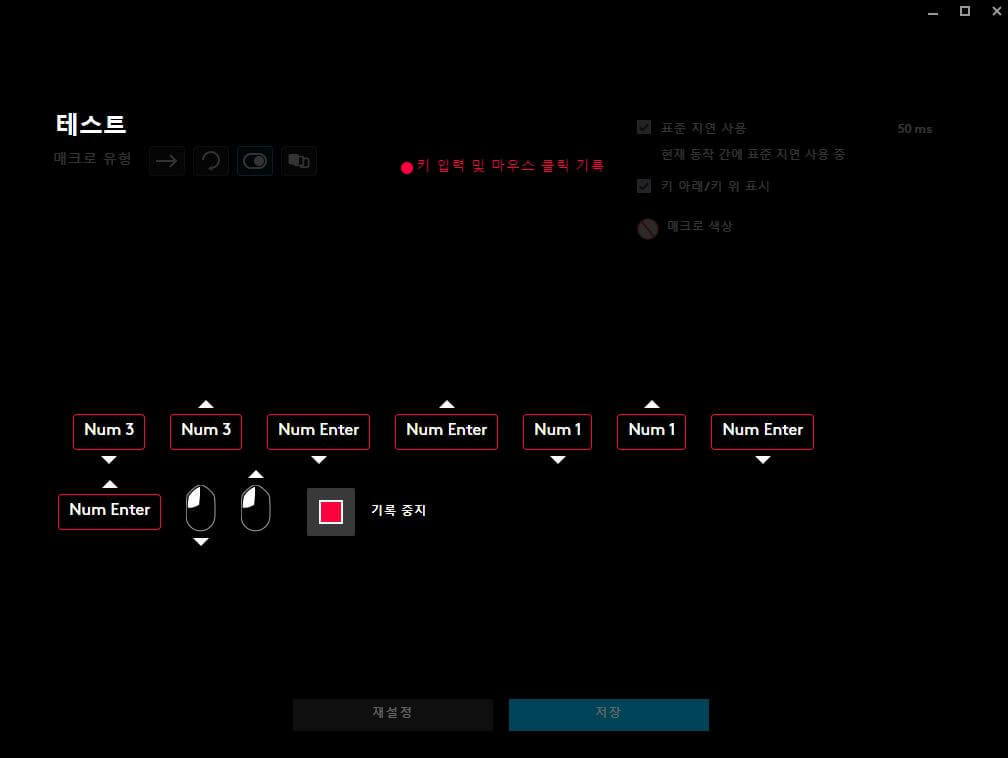 - 매크로 설정하고자 하는 키를 순서대로 모두 입력하면 입력중지를 누른다.