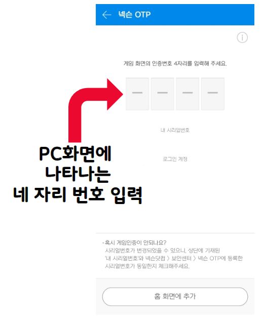 - PC 화면에 떠있는 숫자를 넥슨플레이 앱에 입력