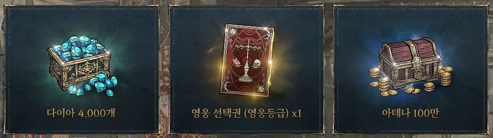 저니 오브 모나크 오픈을 기념하는 쿠폰이 발행되었습니다. 쿠폰 보상은 다이사 4,000개 / 영웅 선택권 (영웅등급) / 아데나 100만입니다. NC 게임에서 영웅등급 보상과 초반 아데나 100만은 큰 도움이 될 것입니다.