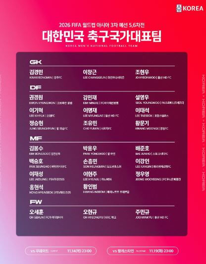 2026 북중미 월드컵 아시아지역 3차 예선 B조 5차전인 한국 vs 쿠웨이트전을 앞두고 축구 대표팀이 소집되었습니다. 한국 쿠웨이트전 중계를 볼 수 있는 방법과 선수단에 대한 정보를 정리했습니다.